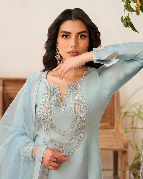 A very cool-toned, soft shade—perfect for daytime functions like engagements, Eid, or pre-wedding events.